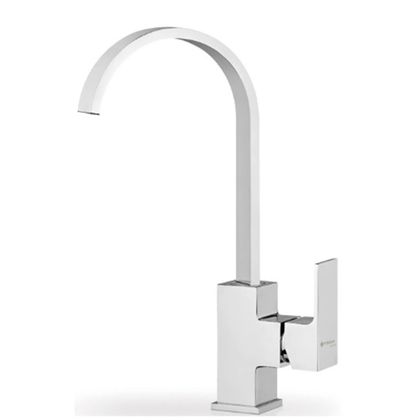 Висок едноръкохватков смесител за кухня Risoluto Ecoline на гръцката марка PYRAMIS, предназначен за стоящ монтаж.