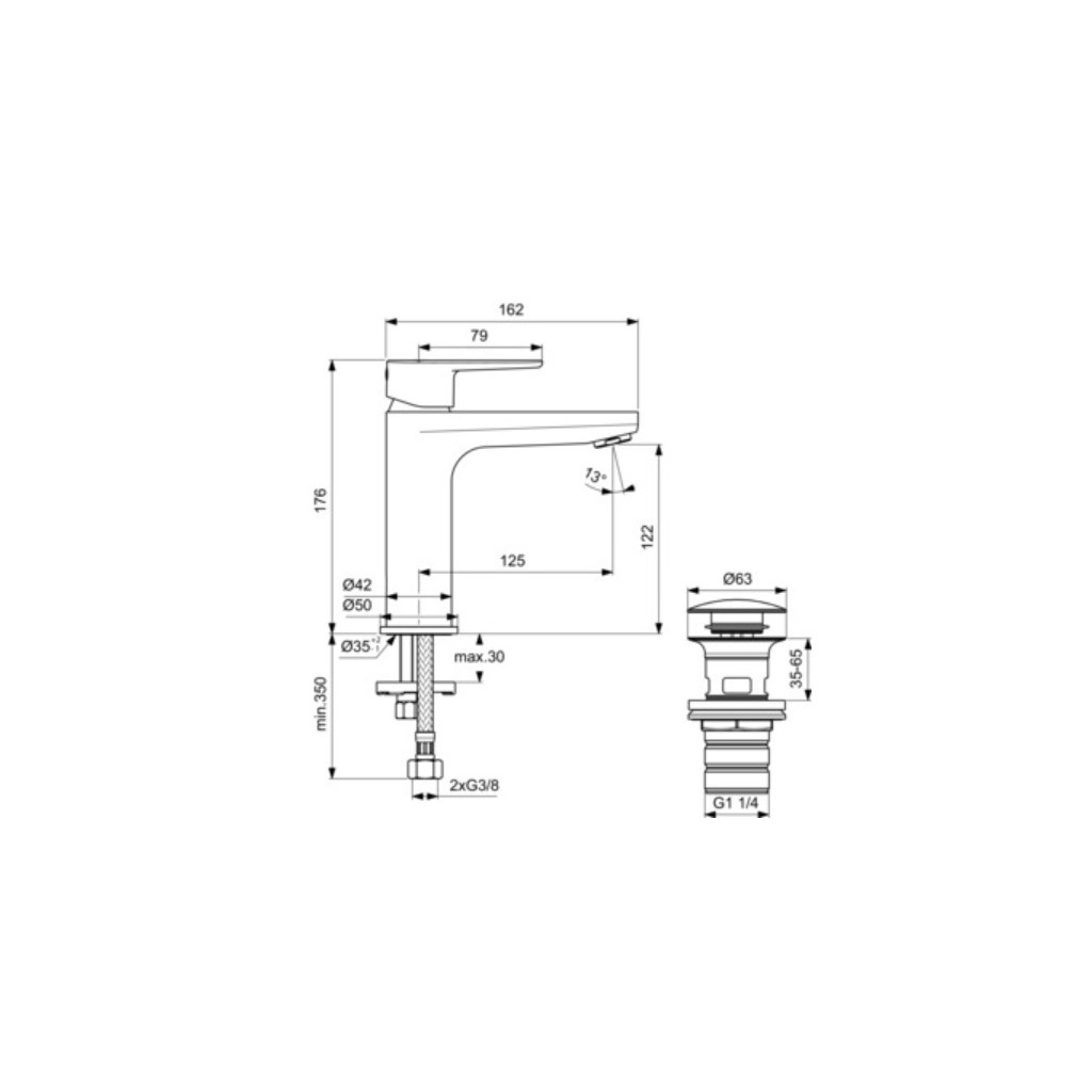 Смесител за баня с Click-Clack изпразнител H120 IDEAL STANDARD