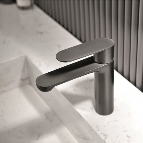 За да запазите уникалния PVD завършек в цвят "оръжейно сиво", почистването трябва да бъде нежно. Използвайте мека кърпа и неутрален сапунен разтвор. Въпреки високата устойчивост на PVD покритието, винаги избягвайте абразивни материали и почистващи препарати с висока концентрация на киселини. Функцията Coin Type на аератора е голямо предимство за лесно почистване на варовика, поддържайки оптимален воден поток.