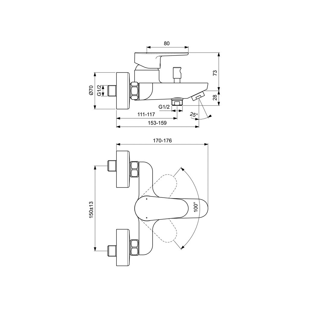 - Продукт: Стенен смесител за вана/душ - Черен