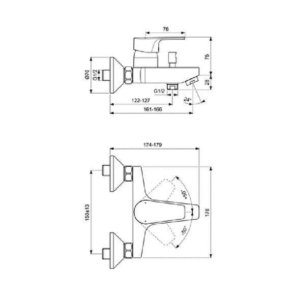 Моделът е предназначен за стенен монтаж със стандартно присъединяване с S-холендри, което улеснява инсталацията към водопроводната система. Смесителят е оборудван и с автоматичен разпределител, който осигурява лесно превключване на водния поток от чучура на ваната към душ слушалката.