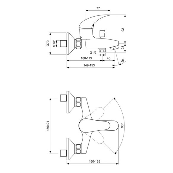 - Стенен смесител за вана/душ