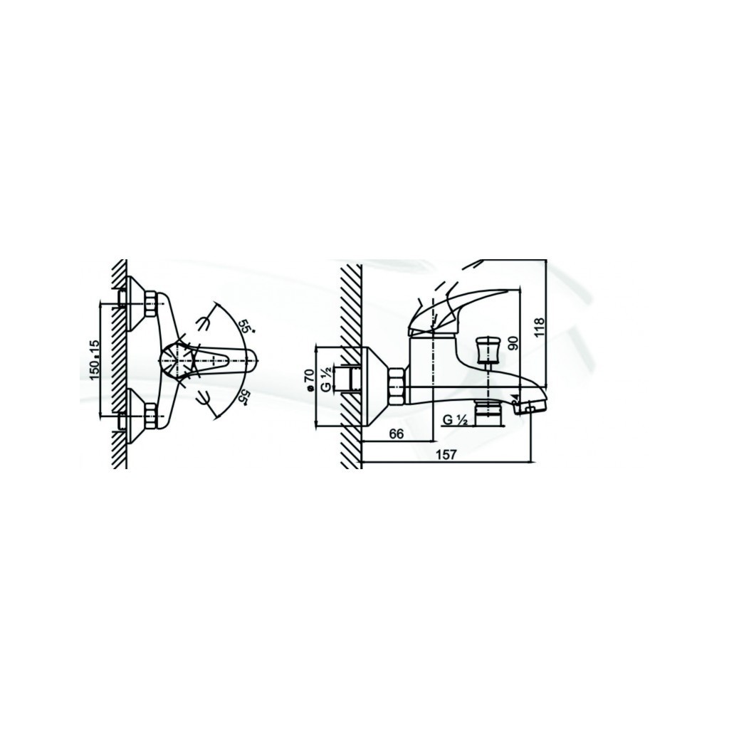 Предназначен за използване с вана и душ, смесителят разполага с една ръкохватка, което го прави изключително удобен и лесен за управление. Стенният монтаж осигурява стабилност и естетично завършване на вашата баня, като същевременно спестява пространство.