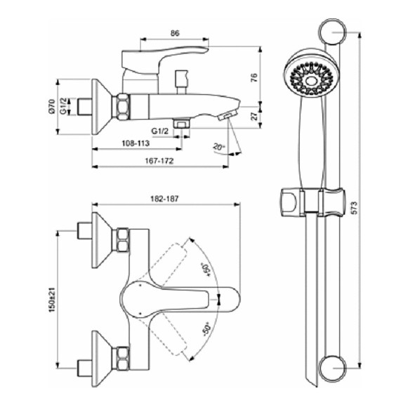 - Тип продукт: Стенен смесител за вана/душ с аксесоари