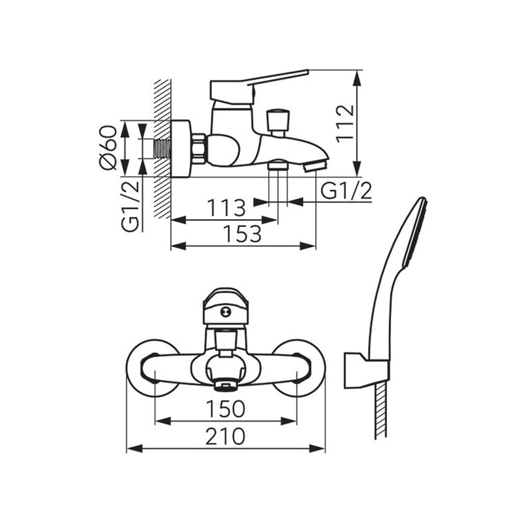 Този стенен смесител е идеален за вани и душ кабини, където се използва подвижен душ. Въпреки че се предлага без душ аксесоари (шлаух, слушалка), стандартната връзка G1/2 за душ осигурява лесна съвместимост с почти всеки комплект за душ на пазара. Подвижният душ е изключително практичен за изплакване на ваната и за лична хигиена.