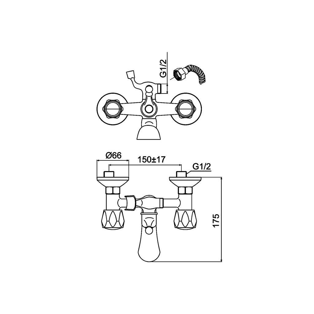Смесителната батерия е изработена от висококачествен материал, който гарантира устойчивост на корозия и дълъг живот, дори при интензивна употреба. Двуръкохватковата система е сигурен избор за бани, където се търси класическа визия и издръжливост.