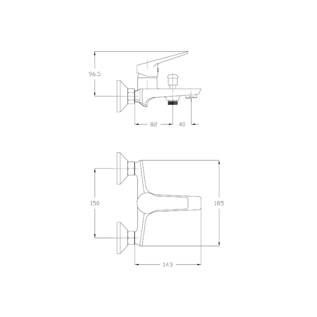 - Широчина (междуцентрово разстояние): 185 мм (стандартно присъединяване 150 мм ± с ексцентрици)