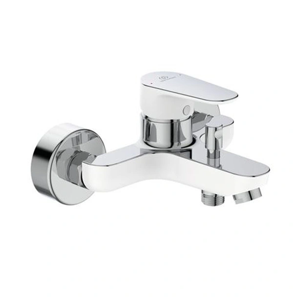 Комбинацията от бял мат и хром е изключително актуална тенденция, която внася чистота и свежест, като същевременно хромът запазва класическия блясък. Този смесител за вана/душ е подходящ както за традиционни вани, така и за модерни душ кабини, изискващи стенен монтаж.