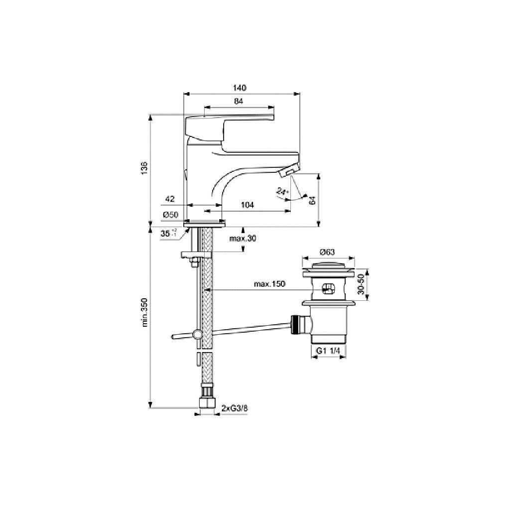- Тип продукт: Едноръкохватков смесител за умивалник с изпразнител