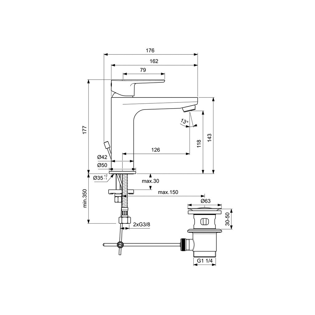 За да се уверите в съвместимостта на смесителя с вашата мивка, ето основните технически параметри: