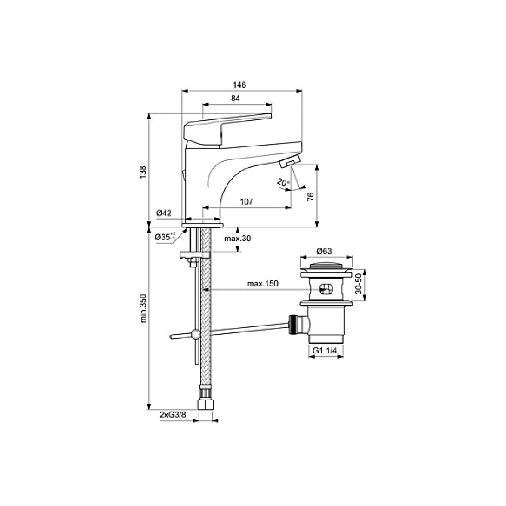 - Тип продукт: Стоящ смесител за умивалник с пластмасов изпразнител