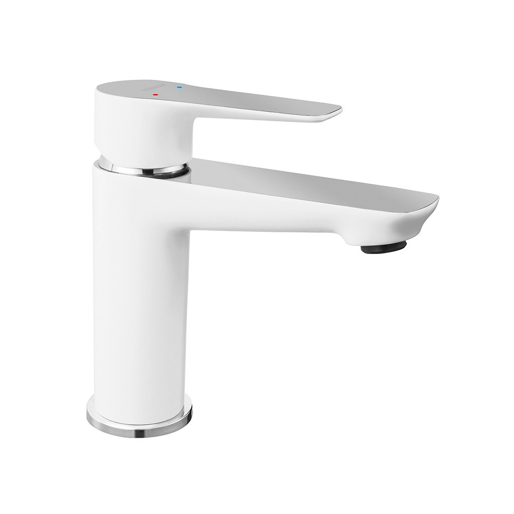 Внесете модерен и свеж акцент във вашата баня с стоящ смесител за умивалник Adore от стилната колекция Adore на FERRO. Този модел е елегантно изпълнен в контрастната цветова комбинация бял/хром, което го прави идеален за съвременни интериори. Като едноръкохватков смесител, той предлага лесно и интуитивно управление на водата и е подкрепен от дългосрочна 5 години гаранция.