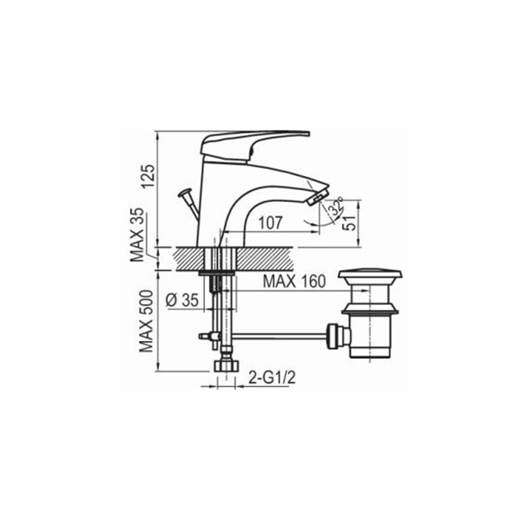 Смесителят се доставя с гъвкави връзки, което улеснява монтажа към водопроводната система. Препоръчва се инсталацията да се извърши от квалифициран специалист, за да се гарантира правилното функциониране на смесителя, Click механизма и автоматичния изпразнител.