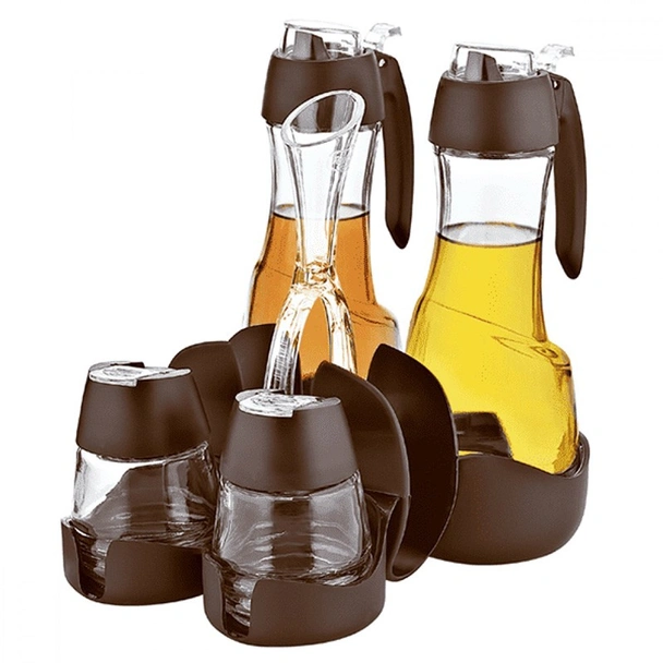 Оливерник, състоящ се от 4 части - съдове за олио, оцет, сол и пипер, и с място за салфетки.