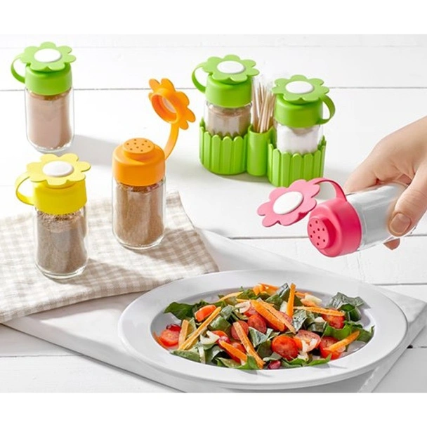 Стъклена солница HN-1116 на турския производител HANE с красива капачка, изработена от PVC материал във формата на цвете.