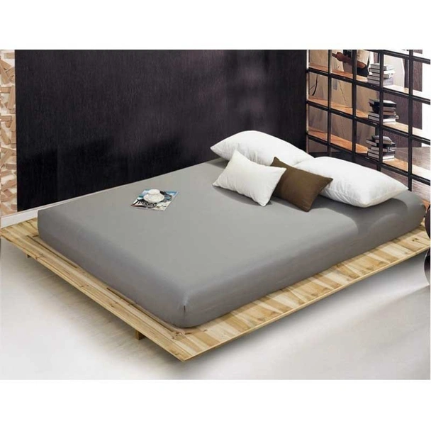 Светлосив чаршаф с ластик на българската марка RAKLA, изработен от 100% памук ранфорс, подходящ за матрак с размери 90x200x20 см.