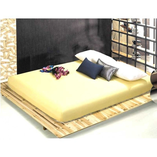 Чаршаф с ластик в цвят екрю на българската марка RAKLA, изработен от 100% памук ранфорс, подходящ за матрак с размери 160x200x20 см.