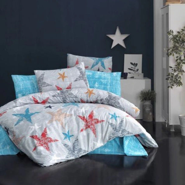 Двоен спален комплект от 4 части на турската марка ZAMBAK със звезди в различни цветове, изработен от 100% памук.