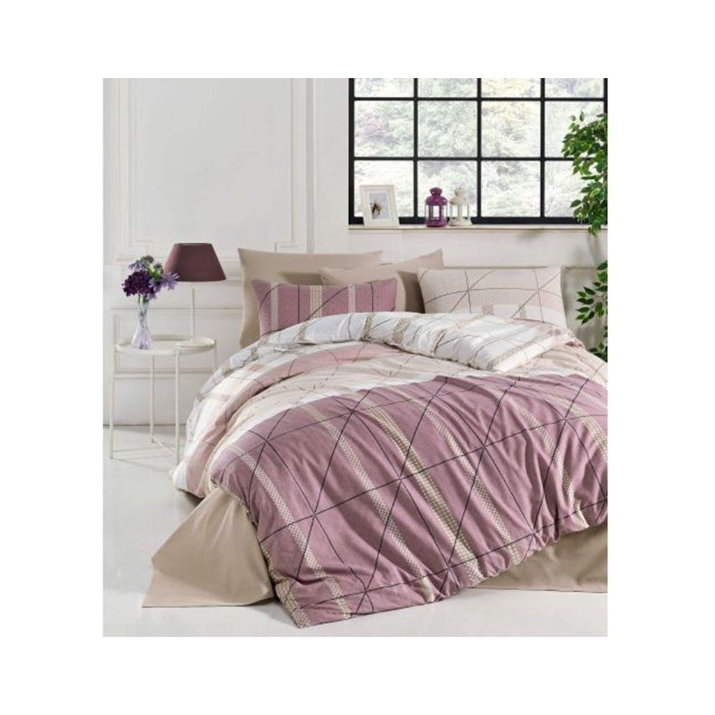 Минималистичната графика достига своята есенция в четириелементния комплект на турската марка ZAMBAK, където чертите и линиите изграждат чиста композиция без излишни орнаменти. Простотата на линейните елементи носи спокойствие и яснота в споделеното спално пространство за двама души. Нежната цветова палитра омекотява геометричната строгост, докато памучната тъкан осигурява естествен комфорт през всички сезони.
