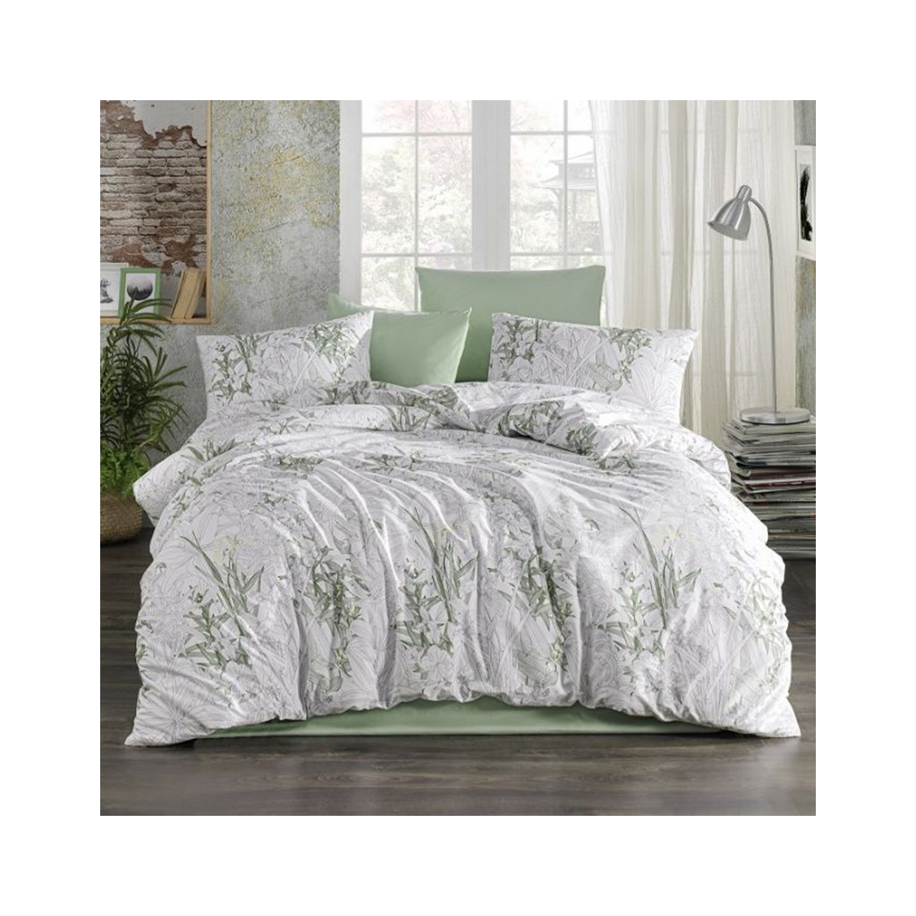Природата вдъхновява най-новата творба на турския бранд ZAMBAK - триелементен комплект, където растителните форми оживяват в чиста бяло-зелена хармония. Флоралните композиции пресъздават усещането за пролетна градина, където свежестта на зелената листна маса се откроява на кристално бял фон. Изцяло памучният състав подкрепя природната философия на дизайна, осигурявайки екологична среда за спокоен сън в единичното легло.