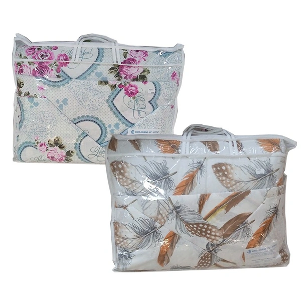Комплектът съдържа долен чаршаф с размери 210х220 см, олекотена завивка с размери 180x215 см и две калъфки с размери 52x72 см.