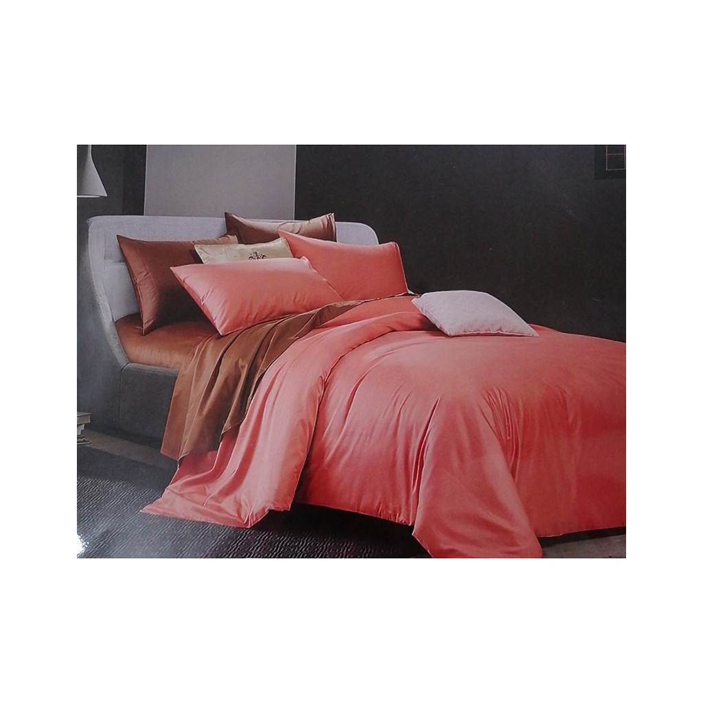 Двуцветен спален комплект от четири части на българската марка RAKLA, изработен от 100% памук ранфорс, в цвят кафяво/пепел от рози.