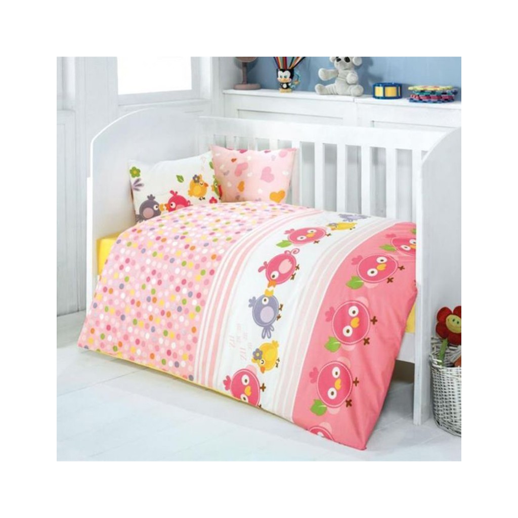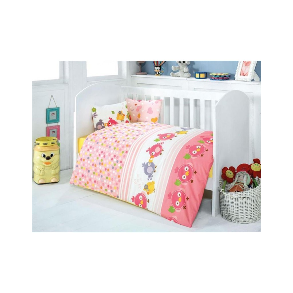 Турският производител ZAMBAK представя очарователен спален комплект от четири части, създаден специално за най-малките членове на семейството. Нежният дизайн с весели пиленца и играещи точки в розова гама превръща всяко детско легълце в приказно кътче за сън и почивка. Комплектът е изработен изцяло от висококачествен памучен плат тип Ранфорс, който осигурява мекота, въздухопропускливост и безопасност за нежната бебешка кожа.