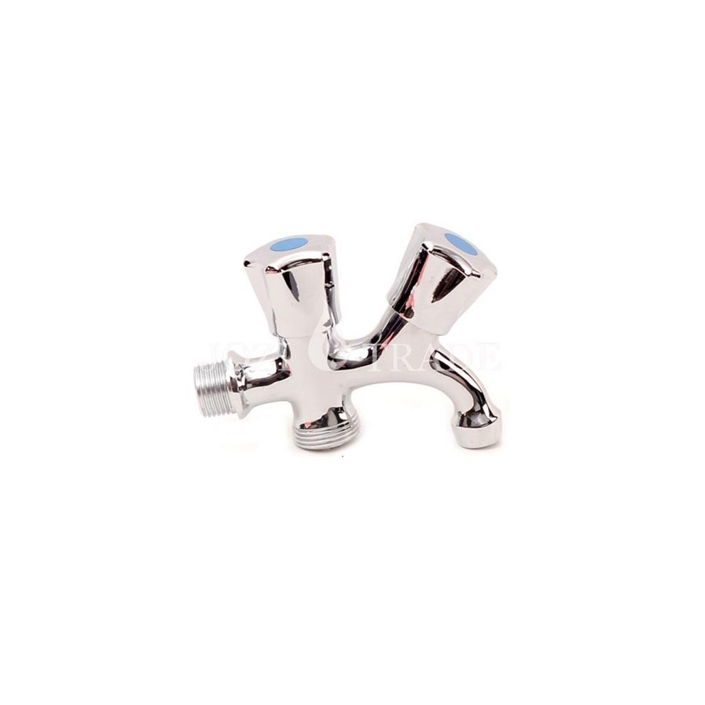 Представяме ви функционална двойна канела, която е проектирана да осигури две независими точки за водочерпене от един водопроводен извод. Тази канела е с универсални присъединителни размери – 1/2" за свързване към основната инсталация и два изхода с различни размери (единият често е 1/2" за директна връзка, а другият 3/4", идеален за маркучи или перални машини). Покритието от полиран хром гарантира нейната изключителна устойчивост на корозия, влага и износване, както и елегантен и дълготраен блясък.