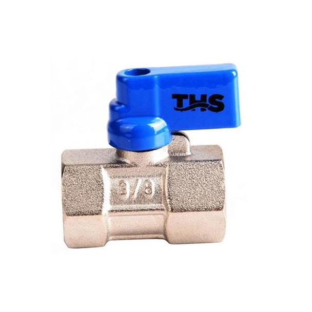 Мини сферичен кран месинг никел синя ръкохватка ЖЖ 3/8"