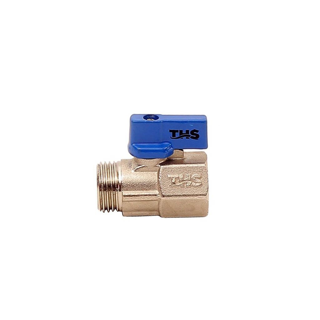 Мини сферичният кран със синя ръкохватка и присъединителни размери 1/2" МЖ (мъжка и женска резба) е компактен и висококачествен фитинг, предназначен за спиране и контрол на потока във водопроводни и отоплителни системи. Този кран е изключително функционален, тъй като позволява директно свързване както към елемент с вътрешна резба (чрез мъжката резба), така и на друг компонент с външна резба (чрез женската резба) в една линия.