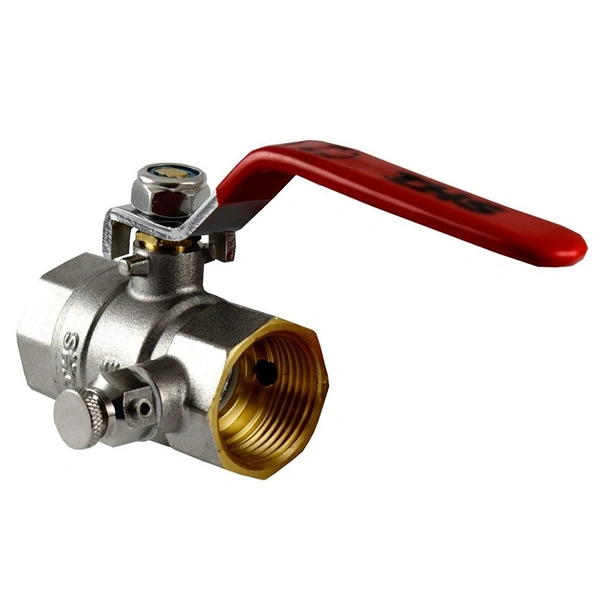 Сферичен кран с изпразнител със салников механизъм на марката THS THERMOSTYLЕ, изработен от горещо пресован месинг с никелово покритие.