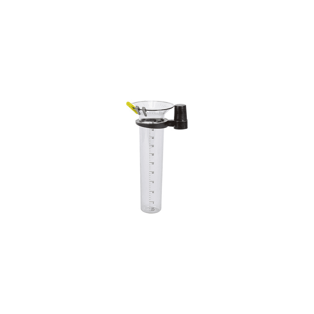 Държачът позволява лесно изваждане на измервателния съд без да се демонтира цялата конструкция. През зимата е силно препоръчително да приберете прозрачния съд на закрито. Въпреки UV защитата, замръзването на вода вътре в конуса може да доведе до разширяване на леда и механично повреждане на пластмасата.