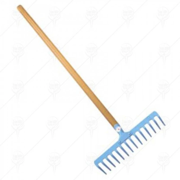 Градинско гребло с дървена дръжка на марката Yapalar разполага с 14 зъба и е предназначено за дръжка с диаметър 28 мм. Размерът на работната част е 385 мм, а дебелината 4 мм. Предлага се в син цвят.
