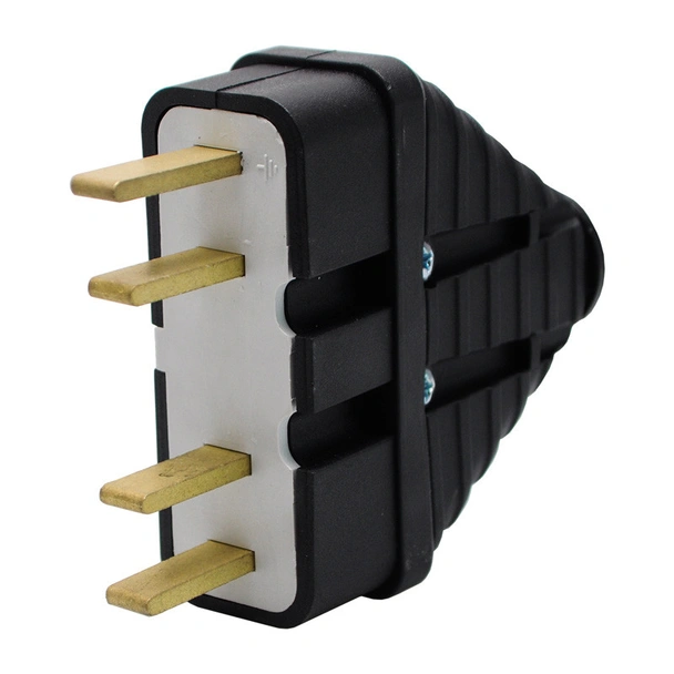 Трифазният щепсел осигурява свързване на кабела с контактното гнездо на трифазен контакт, удължител или разклонител. Широк спектър на приложение при ремонт и подмяна на захранващи кабели на електроуреди. Също така и при създаване на удължители и разклонители.