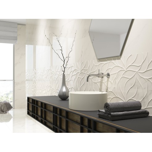 Бял фаянс с размери 30x90 см. В един пакет се съдържат 4 броя плочки с обща покривност 1,08 м2. Повърхността на плочката е гланц. Производител е Испанската марка Azulejos Benadresa. Подходящ за употреба на закрито. Фаянсът е първо качество с правоъгълна форма и дизайн 'мрамор'. Продава се в кашон и цената е за квадратен метър.