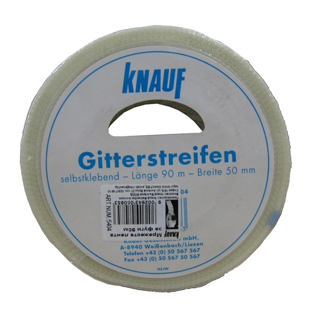 Самозалепваща фугопокривна лента тип мрежа на марката KNAUF с широчина 50 мм и дължина 20 м.