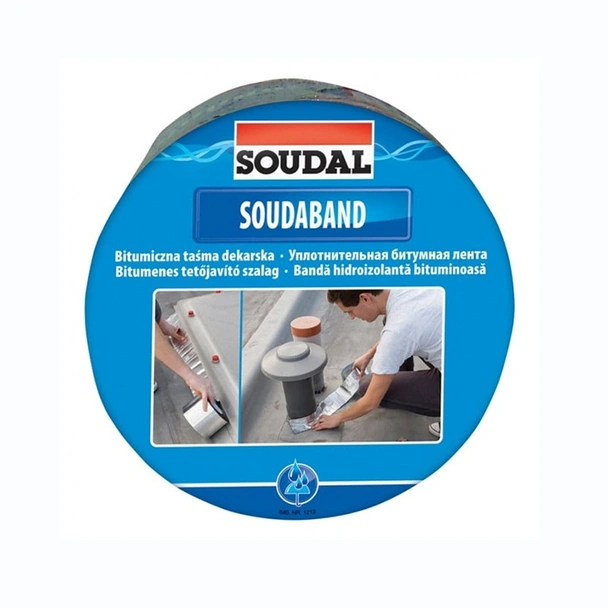 Самозалепваща се хидроизолационна лента 121852 SOUDAL на основата на битум със защитен алуминиев слой, с отлична адхезия към различни строителни материали.