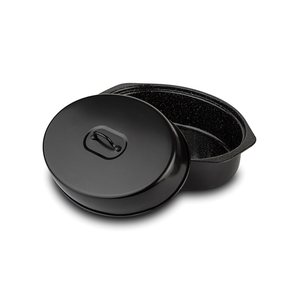 Овалната тава от серията Nature на NAVA е внушителен и високофункционален съд, проектиран за приготвяне на големи порции храна, печене на цели птици (пуйка, патица) или празнични ястия. Съчетавайки здравината на въглеродната стомана с иновативно каменно покритие, тази тава осигурява професионални резултати, като същевременно внася естетиката на природата във вашата кухня.
