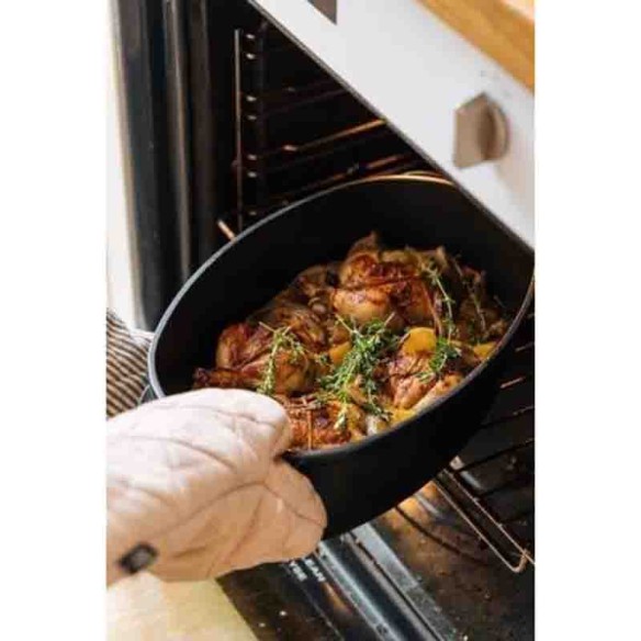 Капакът може да се използва самостоятелно като тиган или съд за печене.