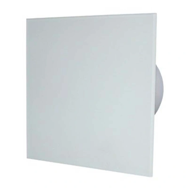 Дизайнерски вентилатор със стъклен прав челен панел, цвят бял гланц.