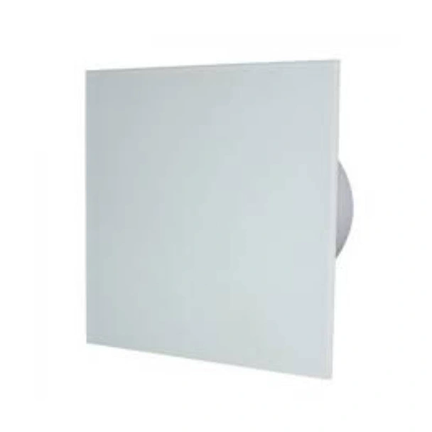 Дизайнерски вентилатор със стъклен прав челен панел, цвят бял мат.