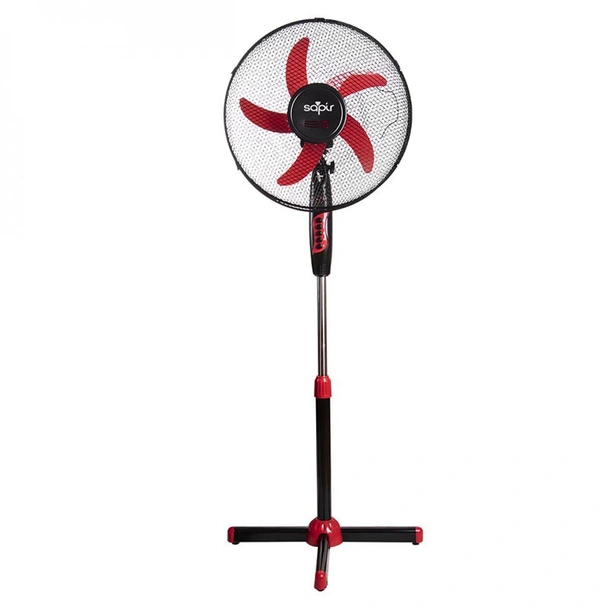 Вентилатор на марката Sapir с мощност 45W има пет перки и диаметър 40 см. Вентилаторът е с височина 125 см, разполага със защитна решетка, аеродинамични витла, кръстата стойка, осигуряваща стабилност, а също така и със светлинен индикатор за включване и изключване. Предлага се в черен цвят. Височината му може да бъде регулирана. Големият ъгъл на хоризонтално въртене ше разпредели духането на вентилатора равномерно във всички посоки на стаята. За повече комфорт, може да избирате и степента на мощност. Електродвигателят е с ниско ниво на шум при работа, така че да Ви даде неоходимото спокойствие и заедно с това- нужната прохлада в горещите дни.