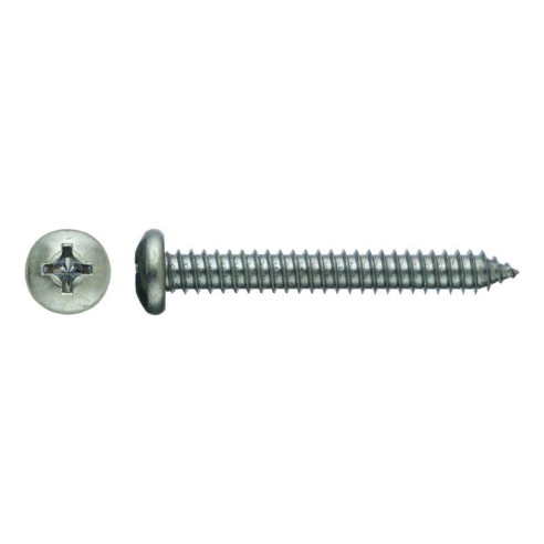 Рапиден винт с полукръгла, цилиндрична глава и кръстат PH шлиц. Резбата е пригодена за самонавиване в метал, но е нобходимо предварително разпробиване на детайлите, предназначени за монтаж, в зависимост от дебелината на винта. Самонарезните винтове са със заострен край.