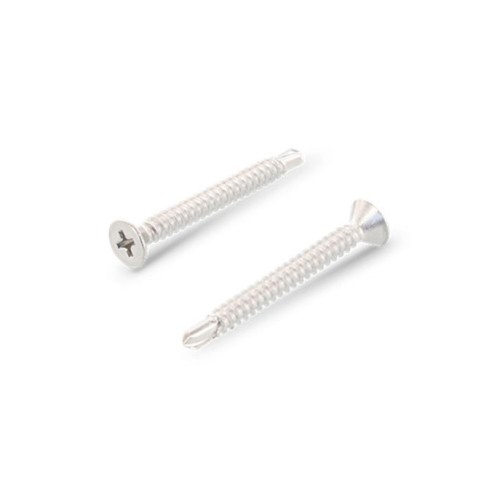 Самопробивен винт с фрезенкова глава и кръстат шлиц PH, неръждаем, подходящ за закрепване на ламаринени покрития, фиксиране на обшивки и укрепващи профили. В началото на резбата имат свредло, поради което не е необходим предварителен отвор в материала, в който ще се закрепва.