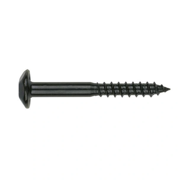 Винтът е изработен от висококачествена стомана с черно антикорозионно покритие. Тази обработка не само предпазва метала от влага, но и го прави идеален за монтаж на тъмни мебели, декоративни елементи или екстериорни дървени конструкции. Основната му характеристика е плоската (фрезенкова) глава, която позволява на винта да потъне изцяло в дървесината, осигурявайки гладка повърхност без стърчащи части.