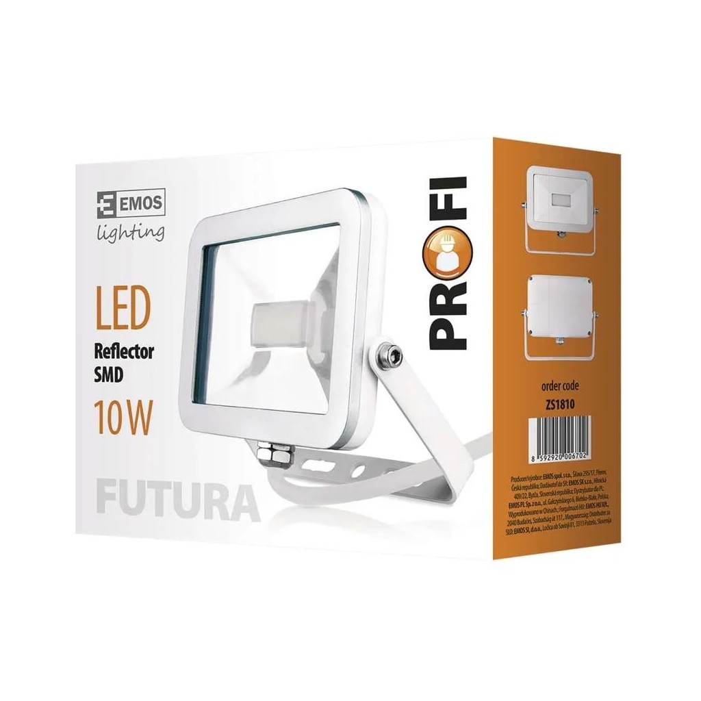 LED лампата 10 W Futura ZS1810 EMOS е модерно, енергийно ефективно решение за осветление, съчетаващо функционалност, елегантен външен вид и висока издръжливост. Тя осигурява ярко осветление с нисък разход на енергия, благодарение на мощния светодиоден източник и вградения рефлектор, който гарантира равномерно разпределение на светлината. Със своя компактен и тънък алуминиев корпус лампата е подходяща за монтаж на открито и закрито, при това с минимални усилия.