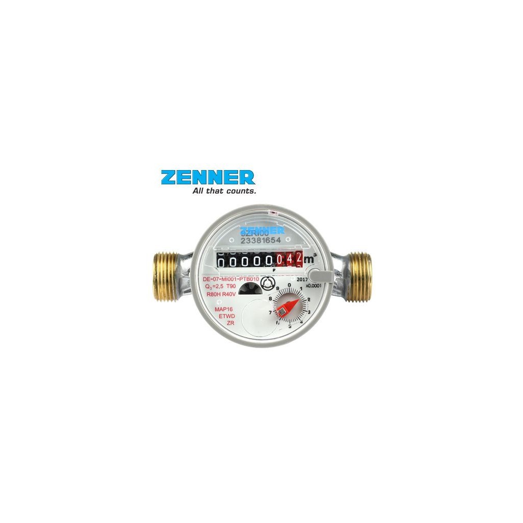 Този модел на ZENNER представлява високотехнологичен едноструен сух водомер, проектиран за прецизно измерване на потреблението на топла вода. С номинален размер 1/2“ и максимален дебит от 3 куб.м/час (Qmax), той е идеален за битови инсталации и малки обекти. Основното предимство на сухия тип водомер е неговата надеждност и дълготрайна точност на измерване, дори при високи температури и потенциално замърсяване във водата.