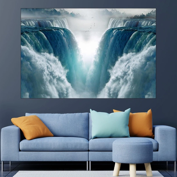 Декорация за стена (картина, пано) с мотив "Пейзаж водопади - картина пано за стена". Изработена от олекотено PVC с дебелина 5 мм или канава от 100% памук, опъната върху дървена подрамка с дебелина 5 см. Изображението се печата с висококачествен UV печат, което е гаранция за запазване на цветовете с години!