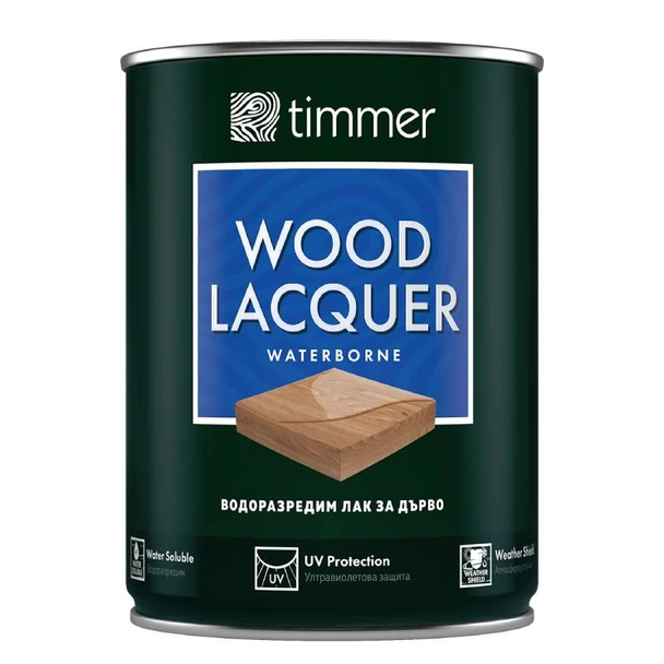 Timmer е висококачествен водоразредим лак за дърво, предназначен за защита и декорация на всякакъв вид дървени повърхности и изделия от твърда и мека дървесина в интериора и екстериора – градински мебели, огради, врати, парапети, беседки, ламперии и др.