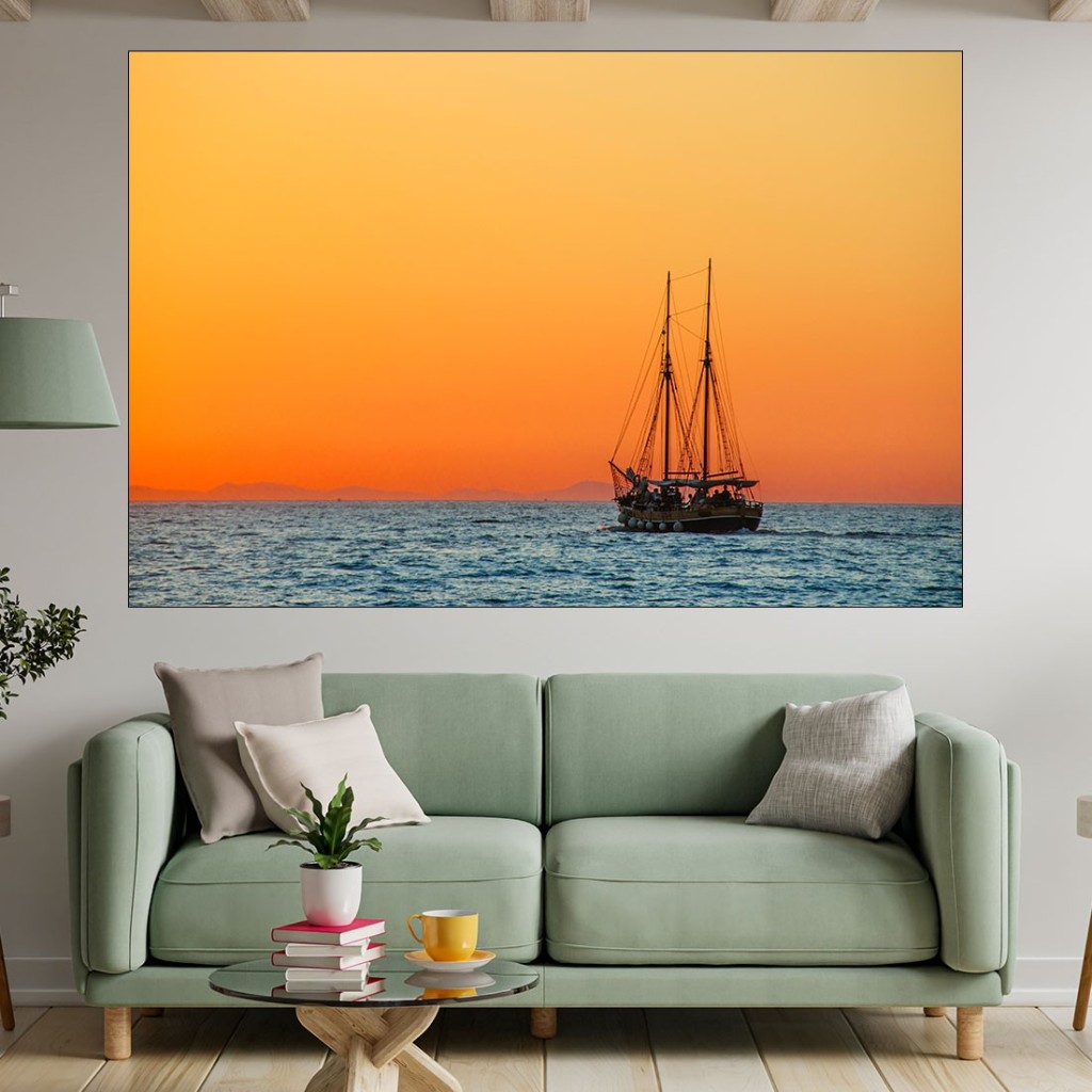 Декорация за стена (картина, пано) с мотив "Мачта към залеза - картина пано за стена". Изработена от олекотено PVC с дебелина 5 мм или канава от 100% памук, опъната върху дървена подрамка с дебелина 5 см. Изображението се печата с висококачествен UV печат, което е гаранция за запазване на цветовете с години!